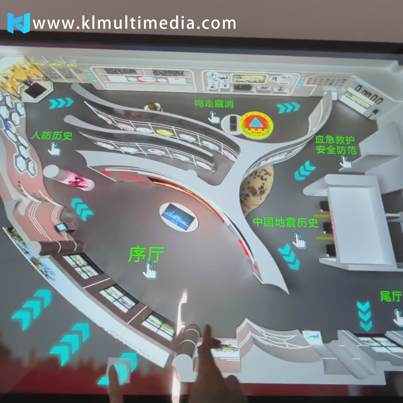Vous pouvez l'intégrer à notre système d'interaction immersive et tactile, permettant aux utilisateurs d'afficher du contenu sur un écran tactile. La salle immersive offre une expérience réaliste de la sensation spatiale au sein de la galerie.